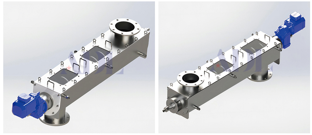 水冷內螺旋保送機包含進料單位、出料單位、筒體、冷卻單位、驅動單位和支持單位,進料單位和送料機構分